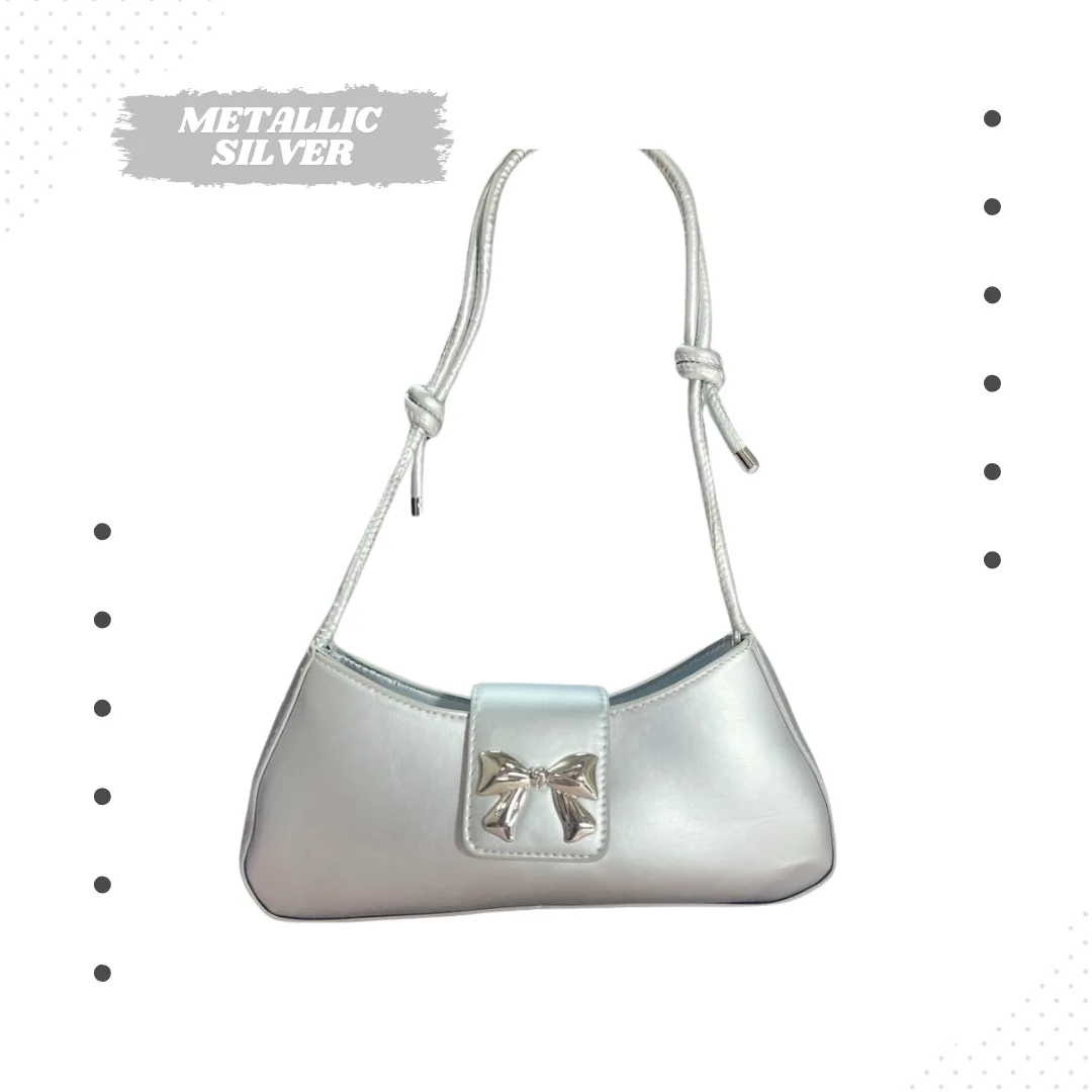 আপনার আভিজাত্য এবং স্টাইলকে ফুটিয়ে তুলতে নিয়ে এলাম এই এক্সক্লুসিভ বাগেট শোল্ডার ব্যাগ। এটি প্রিমিয়াম কোয়ালিটির সিন্থেটিক লেদার দিয়ে তৈরি এবং এর সামনের দিকে থাকা মেটালিক বো (Bow) ডিজাইনটি ব্যাগটিকে দেয় একটি লাক্সারি লুক।