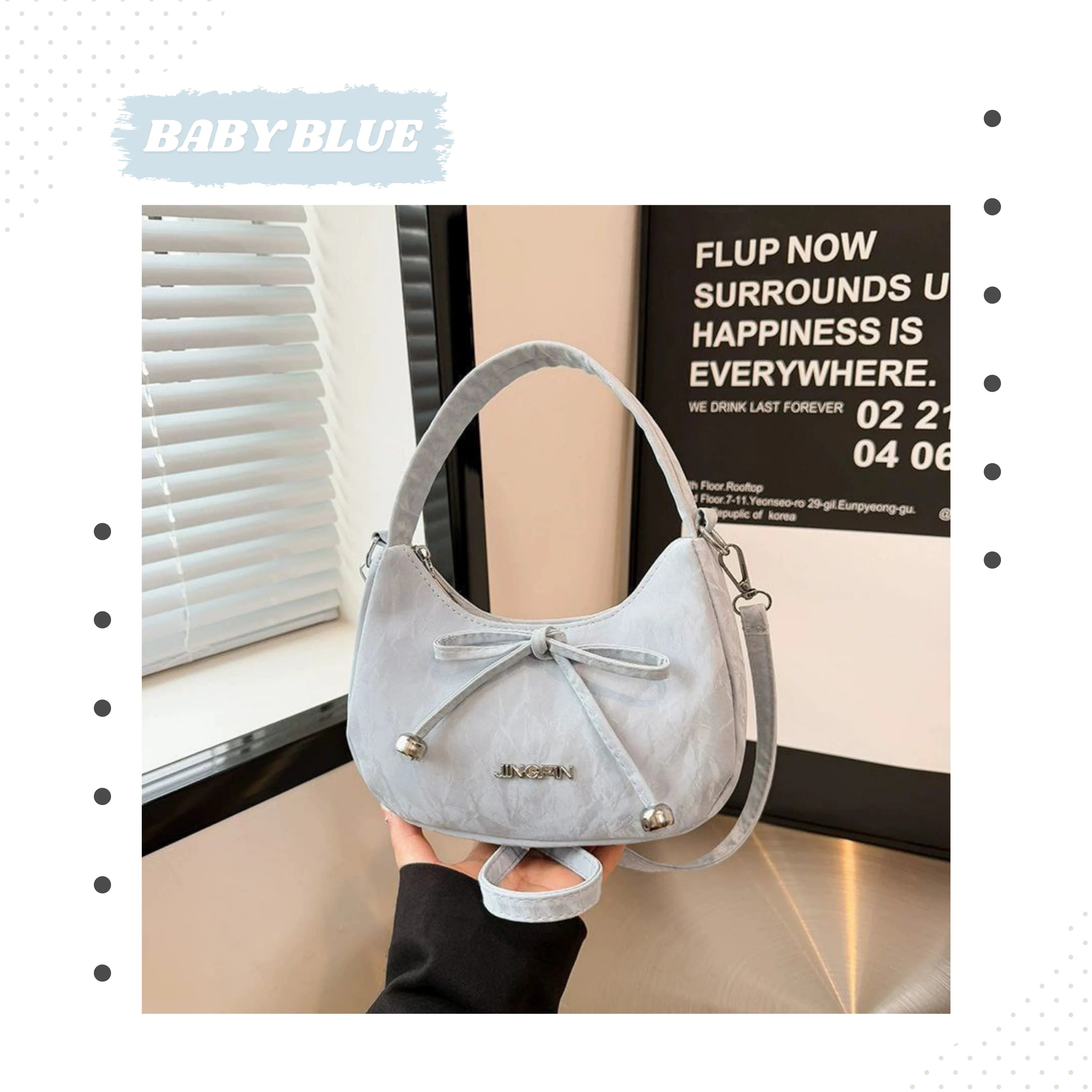 আপনার প্রতিদিনের স্টাইলকে আরও আকর্ষণীয় করতে নিয়ে এলাম প্রিমিয়াম কোয়ালিটির এই ক্রিসেন্ট শেপড হ্যান্ডব্যাগ। ব্যাগটির সামনের দিকে থাকা সুন্দর বো (Bow) ডিজাইন এবং মার্বেল টেক্সচার আপনার আউটফিটে যোগ করবে এক অনন্য আভিজাত্য।