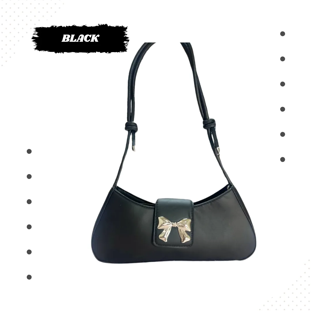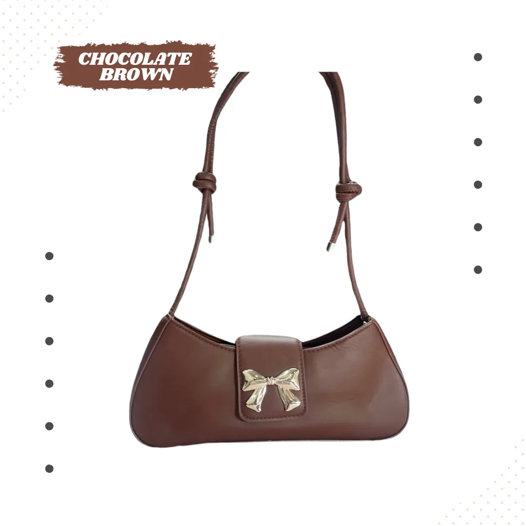 আপনার আভিজাত্য এবং স্টাইলকে ফুটিয়ে তুলতে নিয়ে এলাম এই এক্সক্লুসিভ বাগেট শোল্ডার ব্যাগ। এটি প্রিমিয়াম কোয়ালিটির সিন্থেটিক লেদার দিয়ে তৈরি এবং এর সামনের দিকে থাকা মেটালিক বো (Bow) ডিজাইনটি ব্যাগটিকে দেয় একটি লাক্সারি লুক।