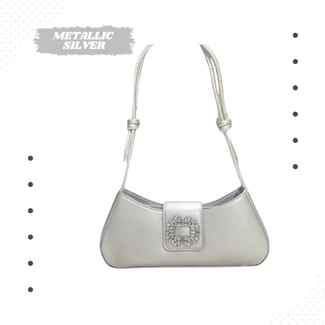 আপনার যেকোনো বিশেষ অনুষ্ঠান বা পার্টি লুককে আরও আকর্ষণীয় করে তুলতে এই ব্যাগটি একদম পারফেক্ট। এটি উন্নতমানের ম্যাটেরিয়াল দিয়ে তৈরি এবং এর সামনের দিকে থাকা গর্জিয়াস ক্রিস্টাল পাথরের ডিজাইন একে দিয়েছে একটি লাক্সারি লুক।
