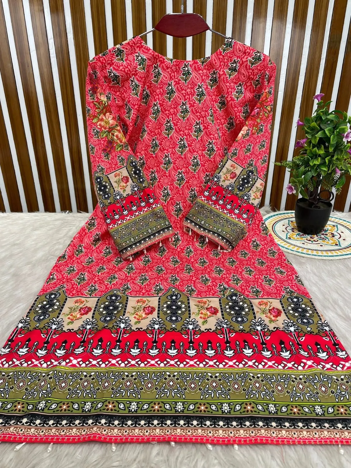 ফেব্রিক্সঃ কামিজ অ্যান্ড প্যান্টের ফেবরিক মাইকো স্ট্রিজ। ওড়না জর্জেট।
