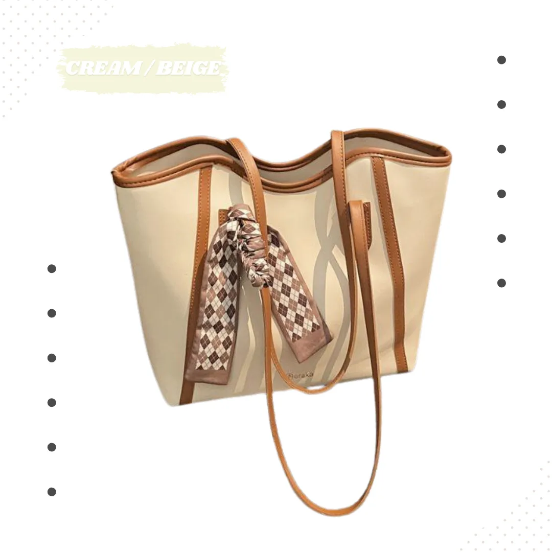 এই প্রিমিয়াম কোয়ালিটি টোট ব্যাগটি স্টাইল এবং প্রয়োজনের এক নিখুঁত সমন্বয়। ব্যাগটির সাথে একটি আকর্ষণীয় ডিজাইনার সিল্ক স্কার্ফ (Twilly) যুক্ত করা হয়েছে যা একে দেয় আরও অভিজাত লুক।