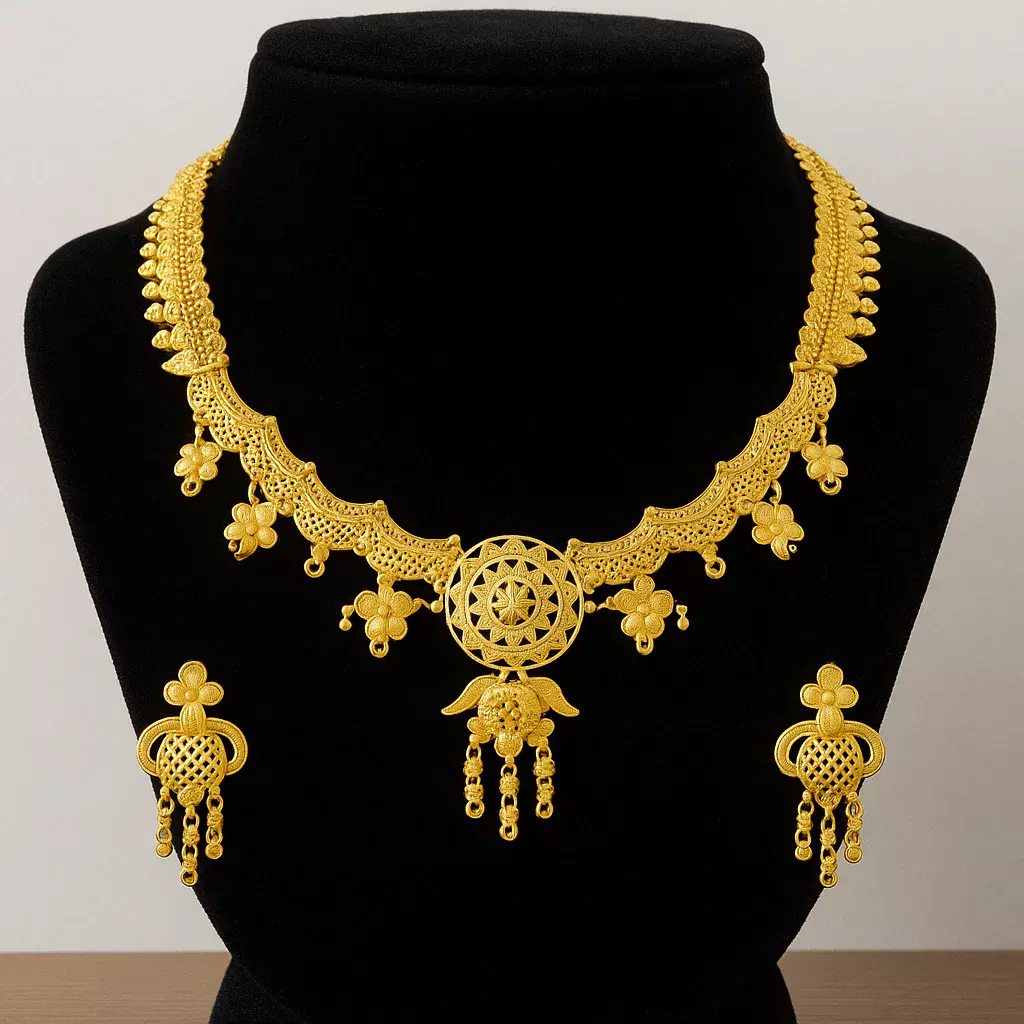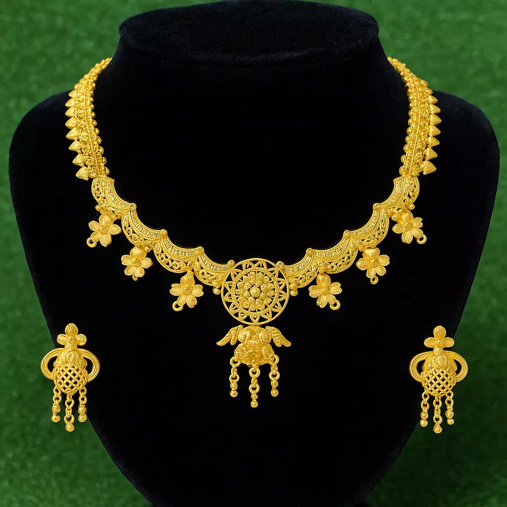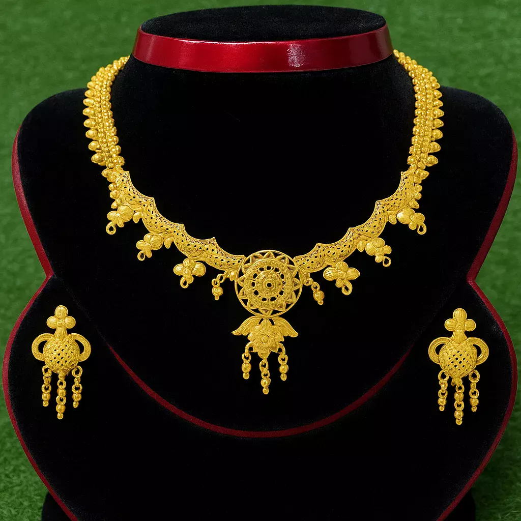 আমাদের এক্সক্লুসিভ সোনার গয়না কালেকশনে স্বাগতম, যেখানে প্রতিটি কারুকার্য বহন করে বাংলাদেশের দক্ষ কারিগরদের হাতের ছোঁয়া।