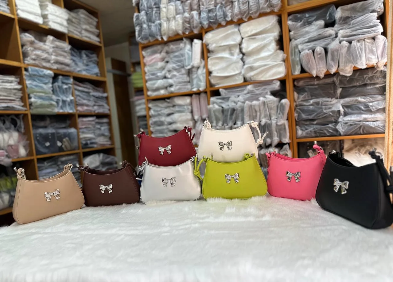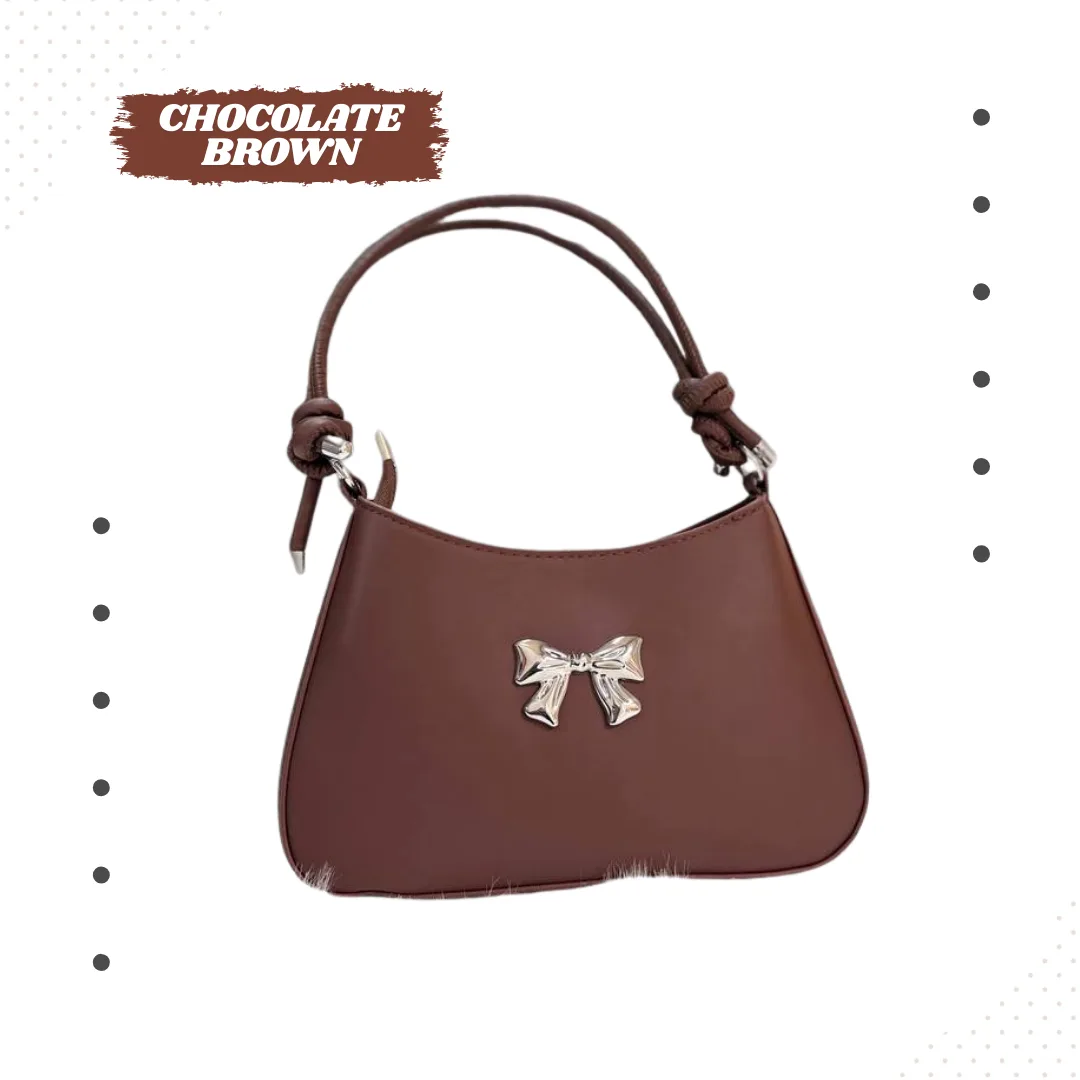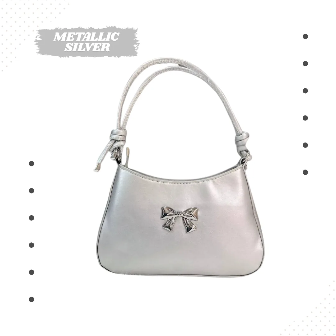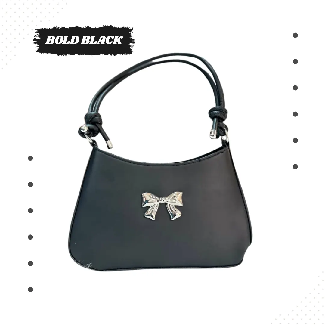 ডিজাইন: ট্রেন্ডি হোবো শেপ এবং আকর্ষণীয় মেটালিক বো ডেকোরেশন।