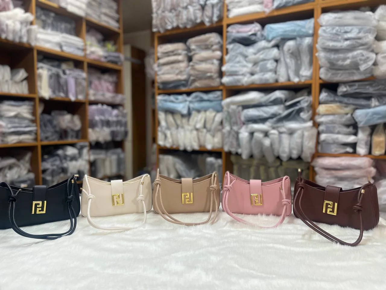 ডিজাইন: ব্যাগের সামনের দিকে আকর্ষণীয় সোনালী রঙের মেটাল 'F' লোগো এবং দুই পাশে স্টাইলিশ নট (Knot) দেওয়া শোল্ডার স্ট্র্যাপ একে দিয়েছে একটি ইউনিক লুক।