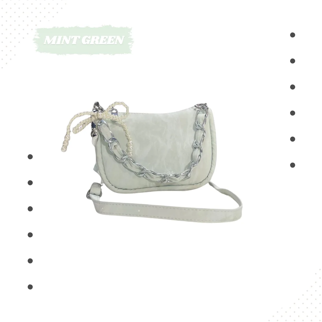স্ট্র্যাপ: এতে রয়েছে স্টাইলিশ সিলভার চেইন এবং অ্যাডজাস্টেবল লম্বা বেল্ট, যা আপনি শোল্ডার বা ক্রসবোডি হিসেবে ব্যবহার করতে পারবেন।
