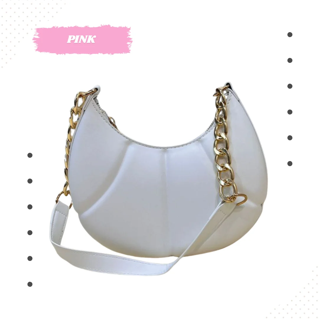 শামুকের আকৃতি বা শেল ডিজাইনের এই আধুনিক ক্রিসেন্ট ব্যাগটি আপনার ফ্যাশনে যোগ করবে এক নতুন মাত্রা। এর আকর্ষণীয় কার্ভ এবং গোল্ডেন চেইন ডিজাইন ব্যাগটিকে দিয়েছে একটি লাক্সারি ফিনিশিং।